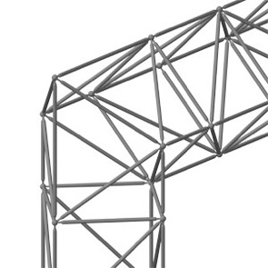 Ogni nodo è predisposto con un foro filettato, pronto ad alloggiare i sistemi di fissaggio del telo in pvc e degli eventuali sistemi di amplificazione ed illuminazione